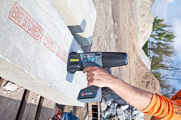 由于石材开采、加工的环境比较恶劣,粉尘严重,因此对于便携式喷码机设备而言是个挑战,EBS手持喷码机作为德国进口喷码机,对于每一个零部件都要求严格,采用创新性的“电磁阀式喷头”相比市场上其它喷码机采用的电压式喷头或热泡式喷码,具有不堵喷头的优点,结合红宝石材质喷嘴,耐磨、耐高温、抗腐蚀,在石材粉尘恶劣的生产环境下能确保机器的稳定性,减少维护费用,符合石材行业的标识需求。