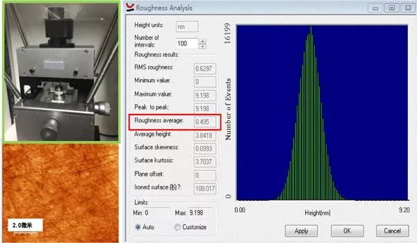 超光滑表面除了面形精度和表面粗糙度要求极高以外,还要求表面有完好的晶格结构、无缺陷,能消除加工损伤层。关键在最后一道工序:超精密抛光技术。波长光电的超光滑表面加工工艺结合了传统的机械去除法以及磁性抛光法,达到表面粗糙度低于5 Å。原子力显微镜的测试结果。