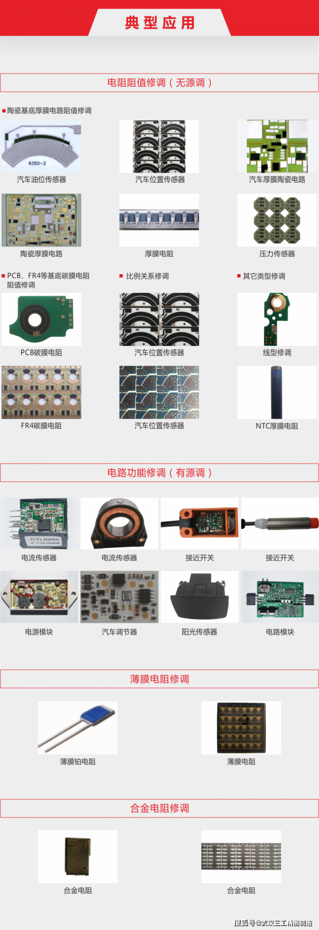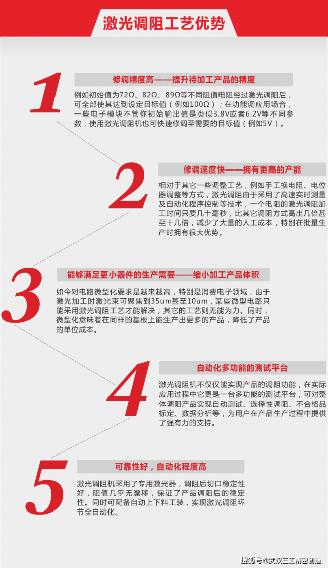 4、激光调阻可以满足更小器件的微调,缩小加工产品的体积,激光束可聚焦到35um甚至10um,电路微型化意味着在同样的基板上能生产出更多的产品,降低了成本。