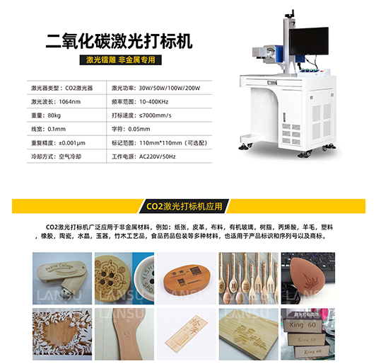 二氧化碳激光打标机与光纤激光打标机不同的是,它采用CO2气体作为激光光源,将CO2气体充入高压放电管中产生辉光放电,使气体分子释放出激光,将激光能量放大后就形成对纸箱材质加工的激光束,激光束使纸箱局部表面气化达到雕刻的目的。同时设备配备高速扫描振镜和扩束聚焦系统,可通过激光器的高度来进行深度调节,在使用的同时可以更换各种打标幅面的镜片,打标精度高、速度快、雕刻深浅随意控制。