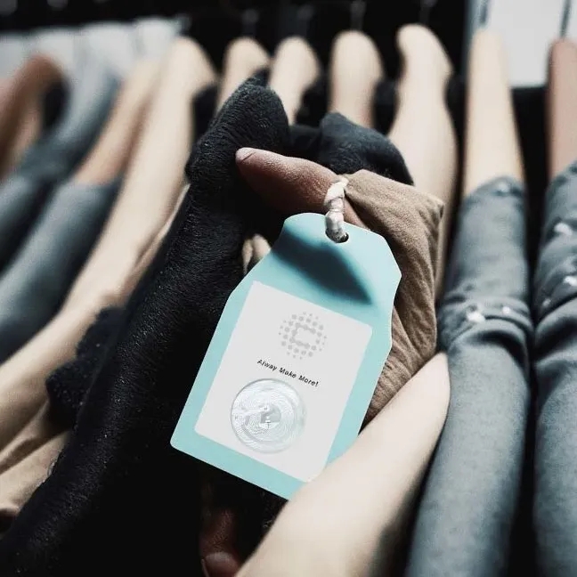 除二维码防伪标签/防伪吊牌外,还可以结合RFID技术,使用织唛RFID标签、铜版纸RFID标签、扎带式RFID标签等;根据羽绒服品牌的溯源防伪需求,将加密RFID/NFC芯片在生产阶段与每件羽绒服进行身份ID绑定以及物理绑定,在羽绒服全生命周期过程中,记录各个关键节点数据。