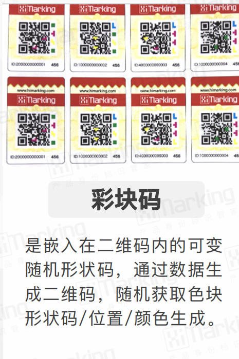 针对消费者 “难辨真假”、酒企 “防伪成本高” 的问题,HiMarking 采用彩块码 + 多层验证技术: