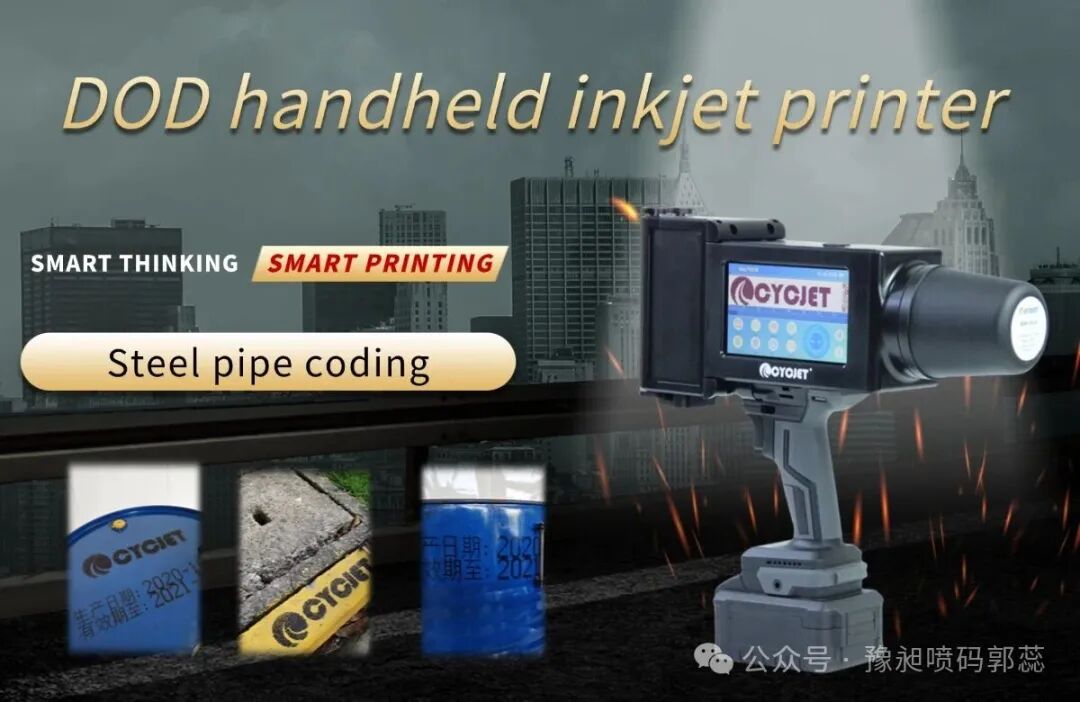 CYCJET DOD手持式喷码机,整体机身精致小巧携带方便,一次充电可连续使用12小时,适合在长时间钢结构上进行标识。