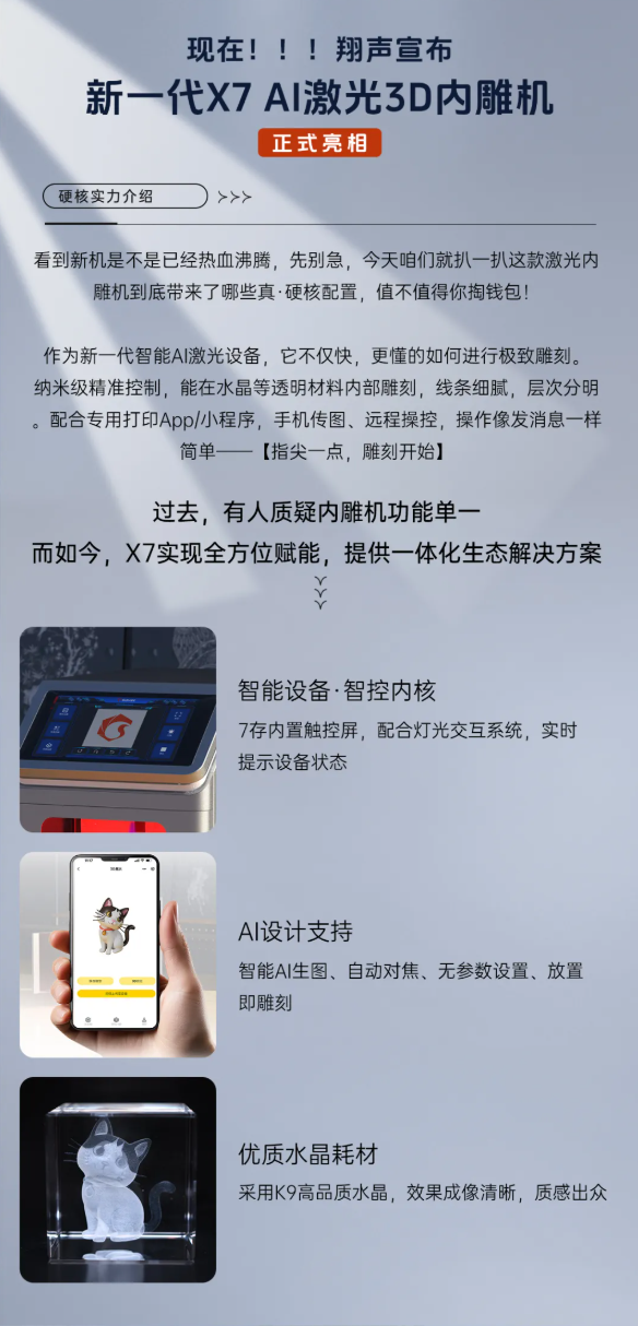 醒创造之力!翔声新一代X7 AI激光3D内雕机,让想象照进现实!