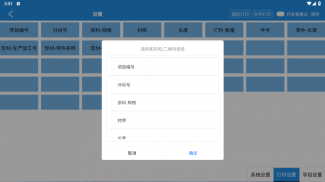 用户可自行选择所需的喷码信息,如项目编号、分段号、材质、尺寸、零件名称等等。