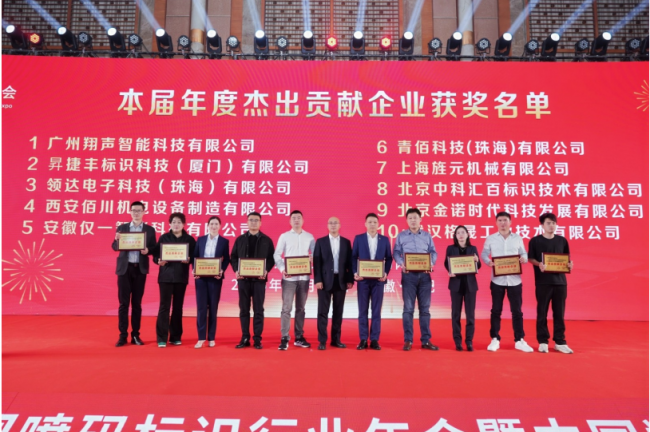 此外,晚宴期间还进行了隆重的颁奖仪式,广州翔声智能科技有限公司、昇捷丰标识科技(厦门)有限公司、领达电子科技(珠海)有限公司、西安佰川机电设备制造有限公司、安徽仅一智能科技有限公司、青佰科技(珠海)有限公司、上海旌元机械有限公司、北京中科汇百标识技术有限公司、北京金诺时代科技发展有限公司、武汉格晟工业技术有限公司被授予2025年度杰出贡献企业以表彰他们在数智化包装领域所做出的卓越贡献,期望他们在未来的发展中再创新高!