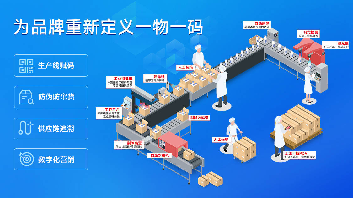 - 优势:提供完整的“设备+软件+服务”一体化方案,实现产线喷码与产品信息管理(生产数据、批次追踪、防伪防窜货)的无缝结合,构建全流程可追溯体系。