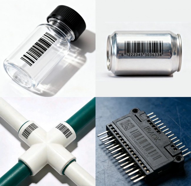 •玻璃容器:酒瓶、化妆品瓶、医药瓶的生产日期、生产批号及防伪信息标识,兼顾美观与合规。