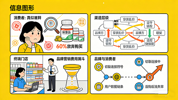 - 真伪信任危机:营养保健食品直接关联健康安全,假货仿冒频发且传统防伪手段易被复制,导致超60%消费者因担心假货放弃购买,品牌口碑承压。