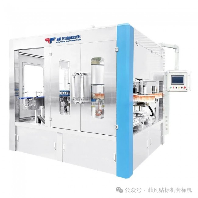 - 伺服电机驱动:每个贴标工位独立伺服控制,贴标压力、速度可精准调节,标签张力均匀,粘贴平整无气泡、无褶皱,尤其适合不干胶、透明标签等高精度需求场景。
