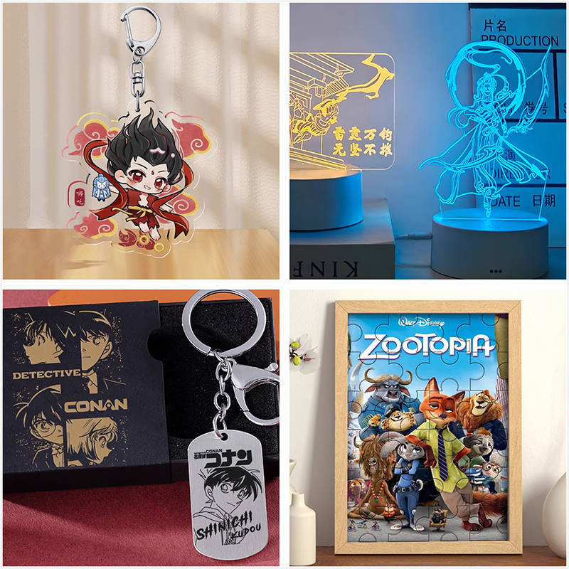 在文创挂件、潮玩饰品、亚克力摆件、木质拼装、皮革制品等IP产品制造中,激光切割几乎已成为不可或缺的基础工艺。