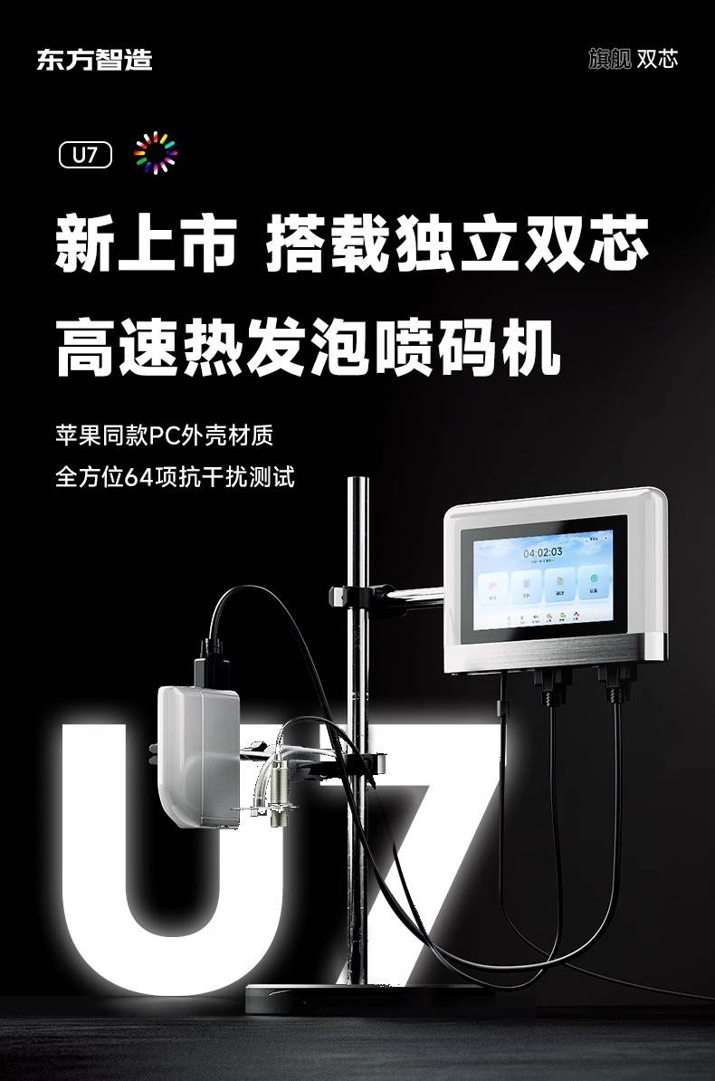总之,东方智造 U7 热发泡喷码机以其卓越的功能、强大的芯片优势和广泛的应用场景,为喷码设备行业带来了新的发展机遇。