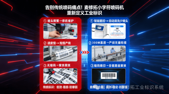 传统小字符喷码机在实际应用中,往往难以匹配现代生产线的严苛要求: