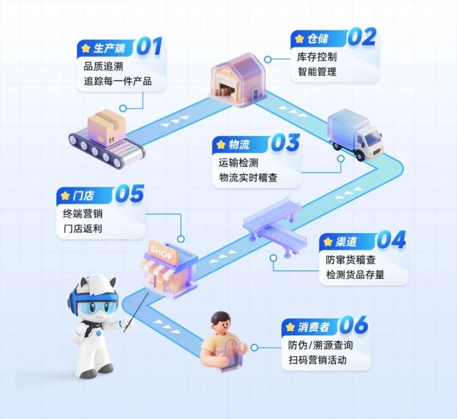 消费者扫码即可验证产品真伪,查看检测报告、使用说明等扩展信息,甚至参与企业质量反馈。