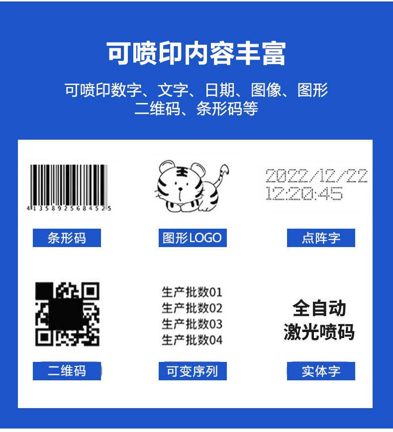 激光喷码解析度高,字体规整美观,无点阵模糊感,视觉效果更精致。