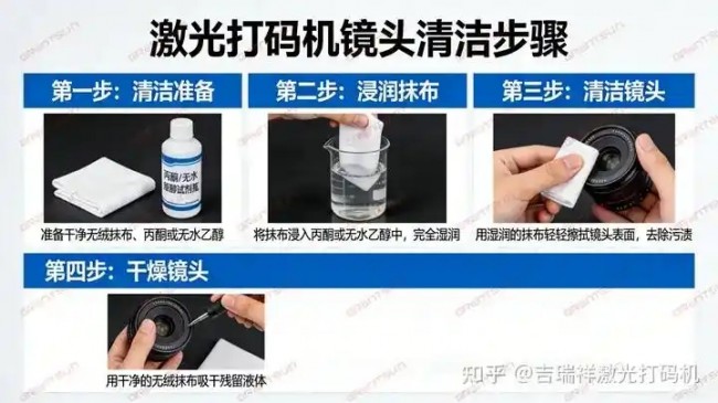 ❌ 切勿使用干布直接擦拭镜头:干布表面易附着细小颗粒,擦拭时会刮伤镜头表面,甚至磨掉镜头的保护涂层,导致镜头损坏,影响刻印精度;
