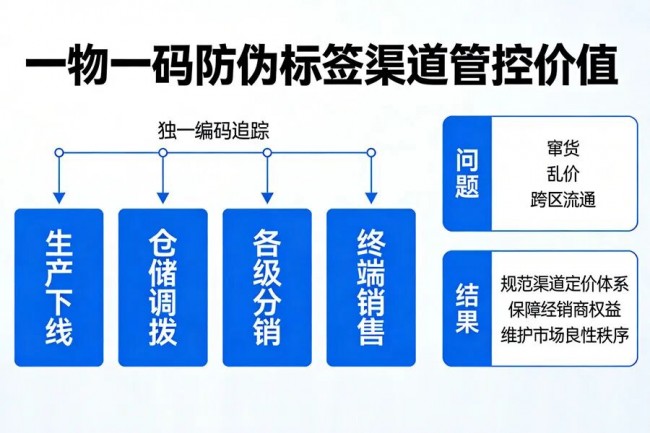 核心的渠道管控价值,是一物一码防伪标签区别于传统防伪的核心亮点。依托标签内的独一编码,品牌方可以全程追踪商品的流通轨迹,从生产下线、仓储调拨,到各级分销、终端销售,每一个环节的流向都可通过编码准确追溯,轻松破解传统渠道中窜货、乱价、跨区流通等行业顽疾,规范渠道定价体系,保障各级经销商的合理权益,维护整体市场的良性秩序。