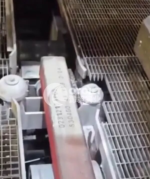 相较于传统标识工艺易出现的模糊脱落、定位偏差、耐温性不足等问题,豫昶实业“先喷涂料后激光打标”工艺实现了质的飞跃,彰显差异化技术优势。机械手搭载高精度伺服系统与视觉定位模块,可在高达1100℃的高温钢卷表面灵活作业,无需等待钢卷冷却,直接衔接生产流程,大幅提升产线节拍效率。第一步喷涂料环节,豫昶采用的耐高温环保涂料,形成一层坚固的聚合物薄膜,与钢卷表面实现紧密的物理及化学结合,无惧高温烘烤、摩擦刮擦与化学侵蚀,为后续激光打标筑牢稳定基底;第二步激光打标环节,搭载高性能光纤激光器,在固化涂料层上精准刻印炉号、批号、规格等关键信息,打标速度快、精度高,字符清晰锐利,深度可控,既避免了激光直接作用钢卷导致的材质损伤,又确保标识不脱落、易识别,解决传统标识在高温环境下易模糊、需二次补标的行业痛点,让每一卷钢卷都拥有唯一且可靠的“数字身份证”。