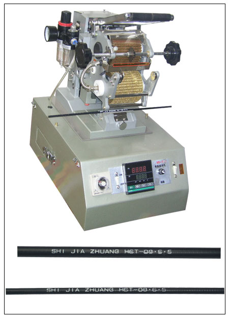 采用热烫工艺,操作简便字迹清晰整齐,不湮不褪。用于烫印 塑料管和导线,电线电缆、的 出厂日期、生产日期,产品编号,系列号,流水号,日期编码,日期编号,等电工配线编号